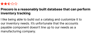 Doss makes Precoro's spend management and procurement tools look like an incomplete puzzle. Precoro's platform lacks inventory, warehousing, and production capabilities - leaving you to piece together multiple solutions as your business grows.