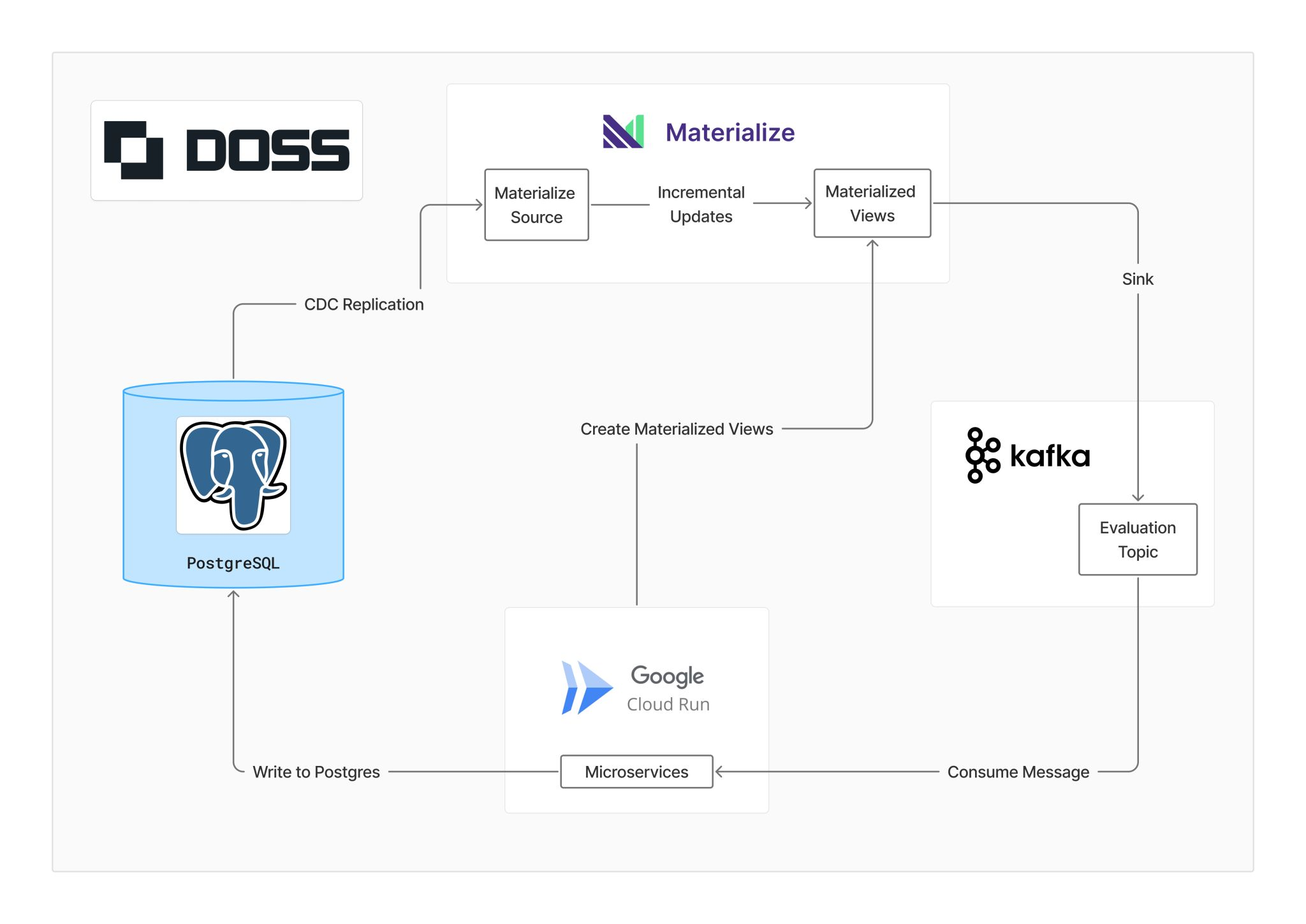 1. Change Data Capture: We replicate changes from our main PostgreSQL database to Materialize using CDC (Change Data Capture).