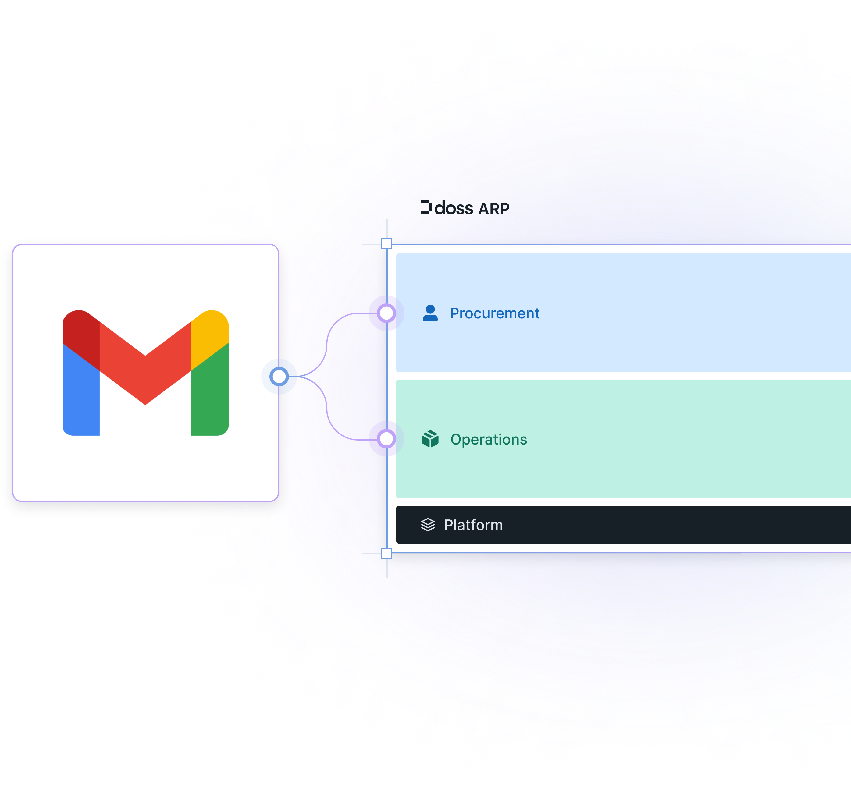 Connect Gmail inboxes to DossARP to automate order processing, procurement notifications, analyze attachments, and more.