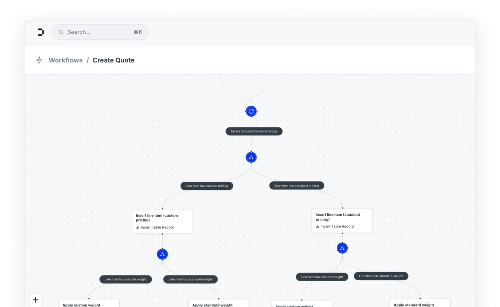 - No Hard-Coded Workflows: Our CPQ module adapts as your business grows. Updating a process is as simple as editing a flowchart, no need for custom code or consultants.
