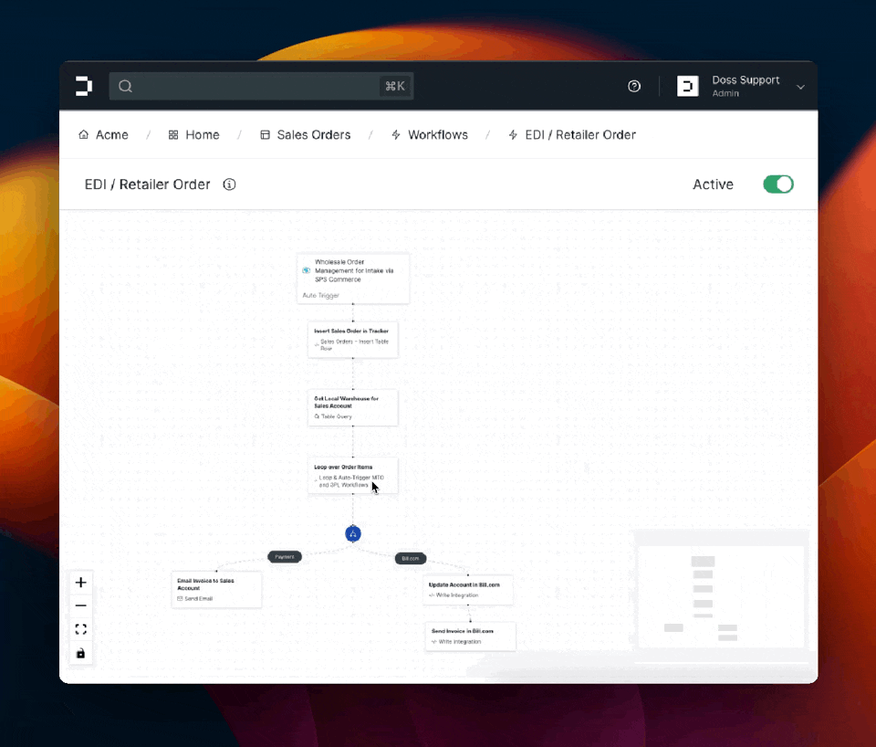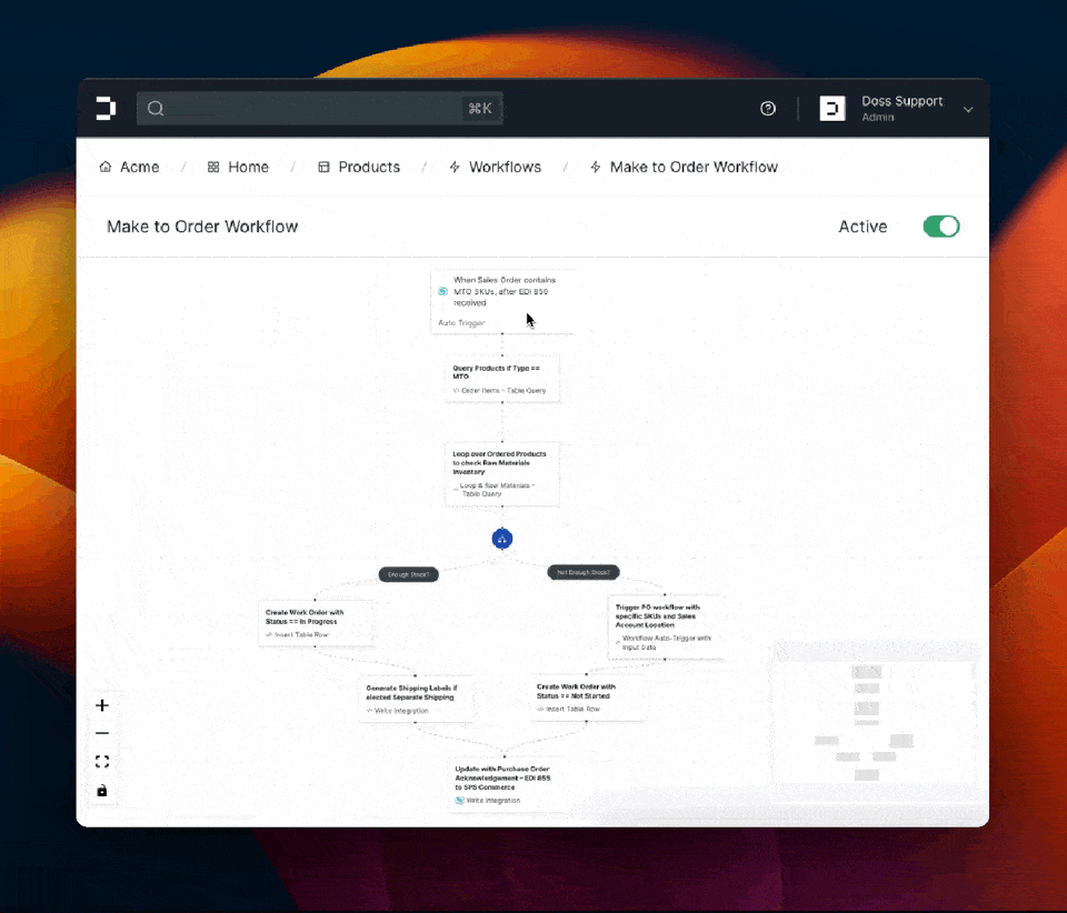 What if you some orders are for SKUs that need to be made-to-order? Or pulled from 3PL stock? No problem. Since all Doss integrations runs natively inside of our Workflow Editor, you can customize the "logic" of an order is processed.